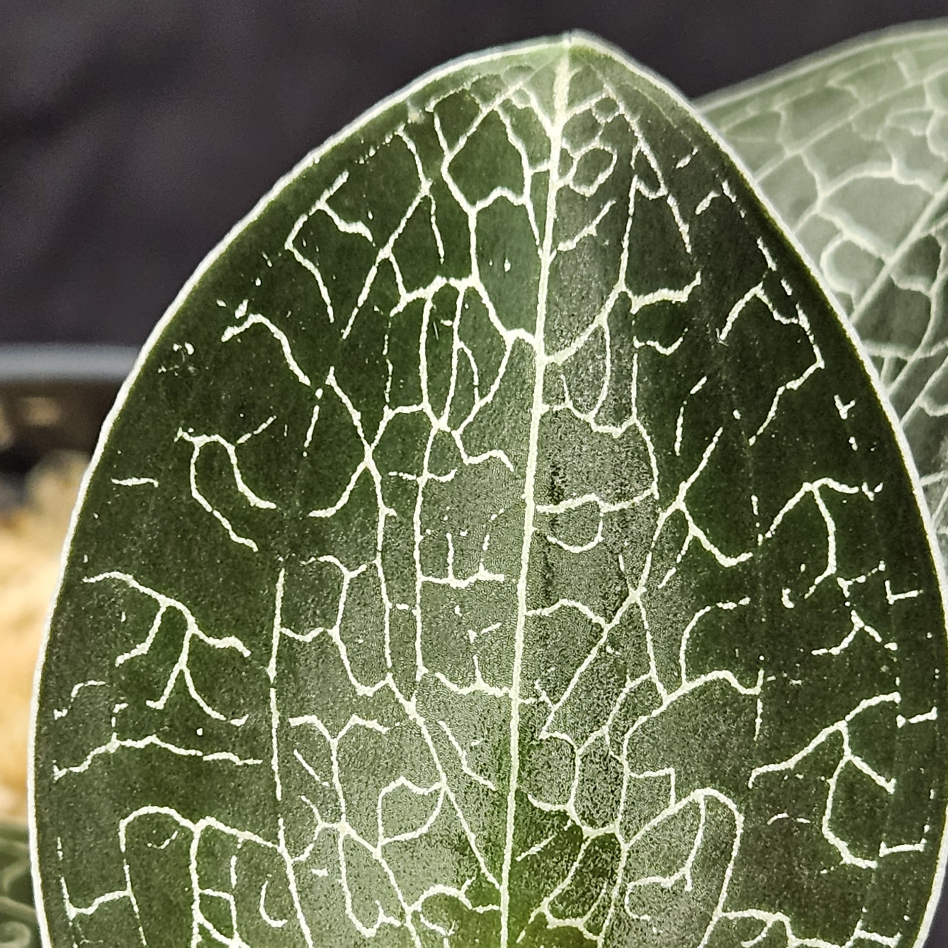 Like silver veins in a mine, the silvery shimmering leaf veins of Anoectochilus sikkimensis ‘Heart Leaf’ run through the green of the shiny leaf blade. This Asian jewel orchid feels at home in temperatures that you also feel comfortable in. It thrives in the shade of tropical forests and is therefore perfectly adapted to low light conditions. Direct sunlight is detrimental to it and leads to bleaching of the leaves. The roots must grow in a well-aerated, constantly moist substrate. Waterlogging is very likely to kill it. Please also fertilise sparingly and only use rainwater for watering if possible. The pictures shown are examples, the plant you purchase is similar to the pictures.